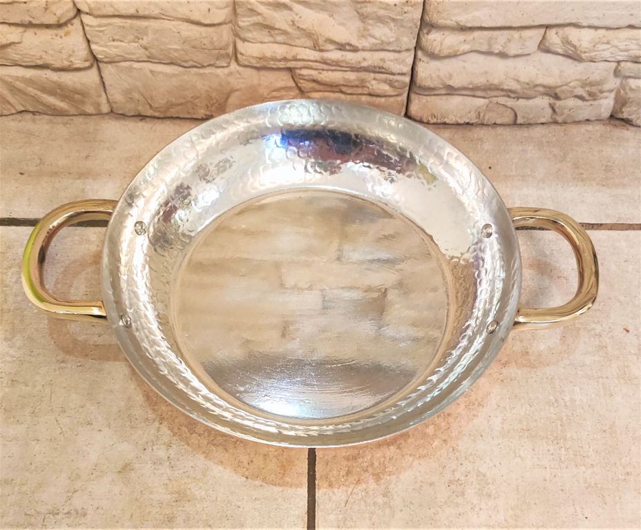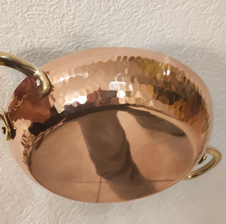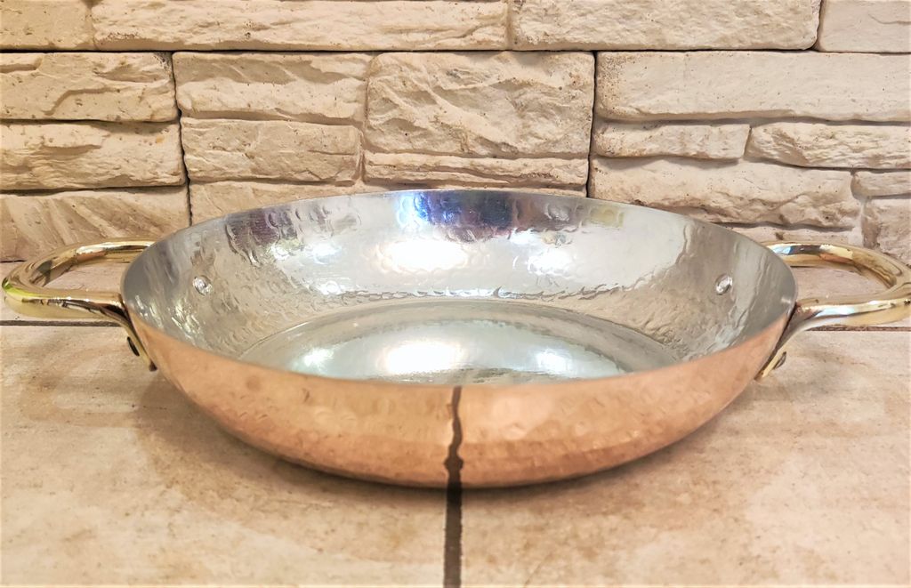 Медная отличная сковорода изготовлена из чеканной массивнной меди. Тяжелая. Турция