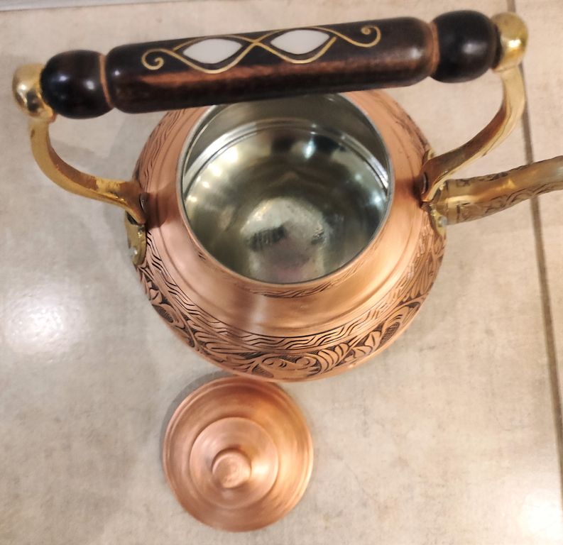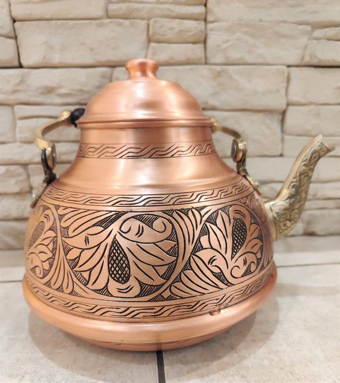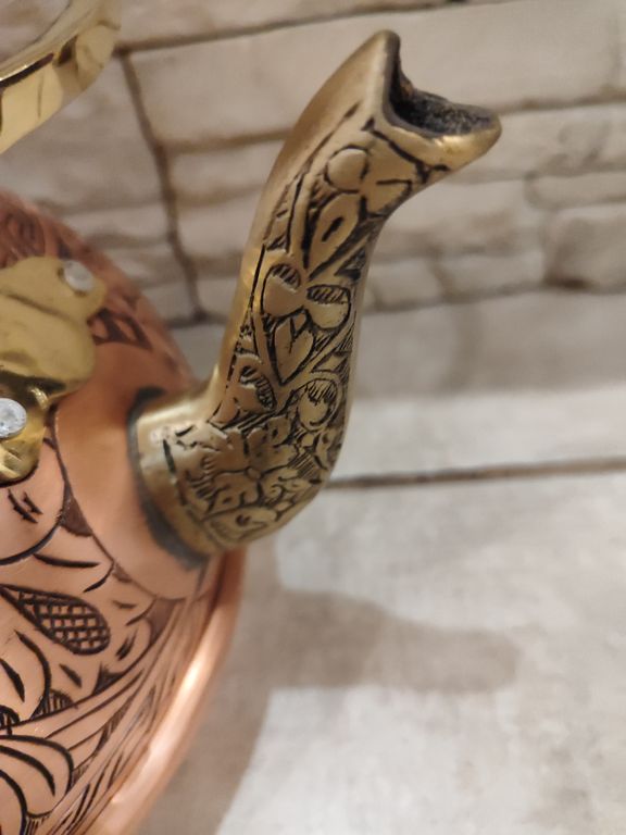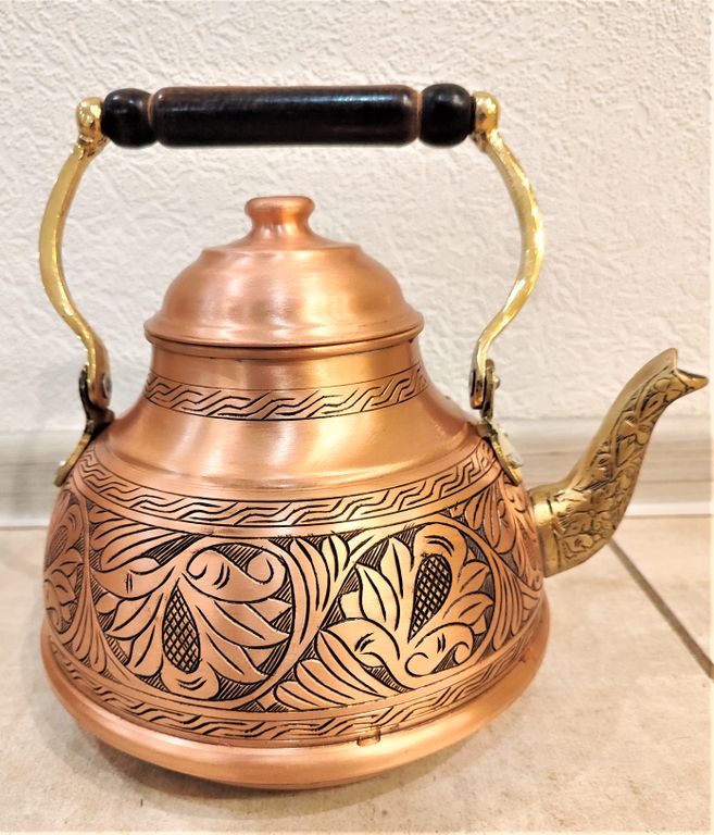 Медный чайник, изготовлен в кустарной мастерской в винтажном стиле. Турция