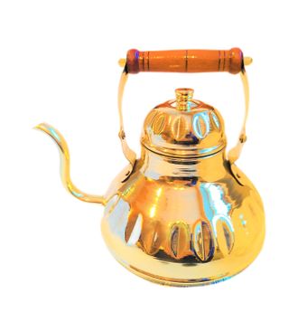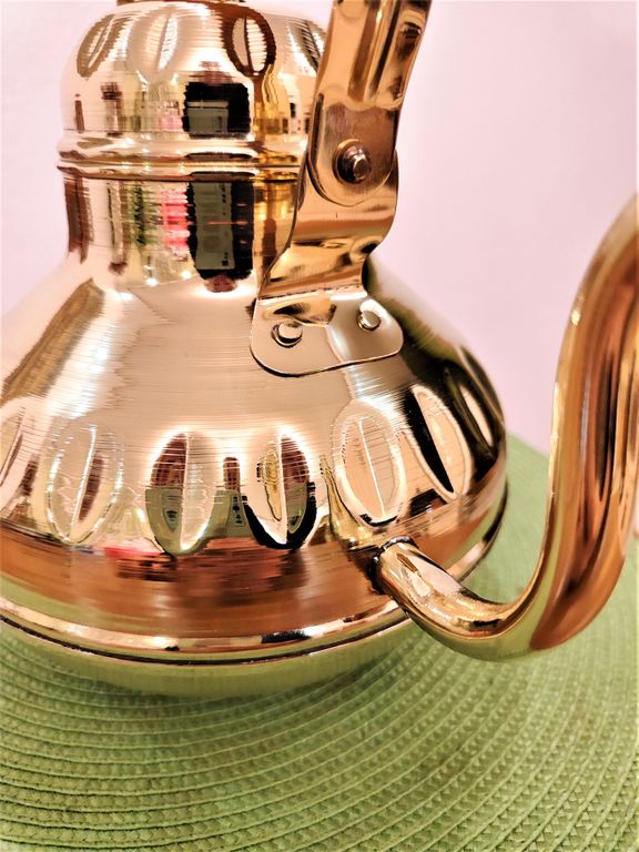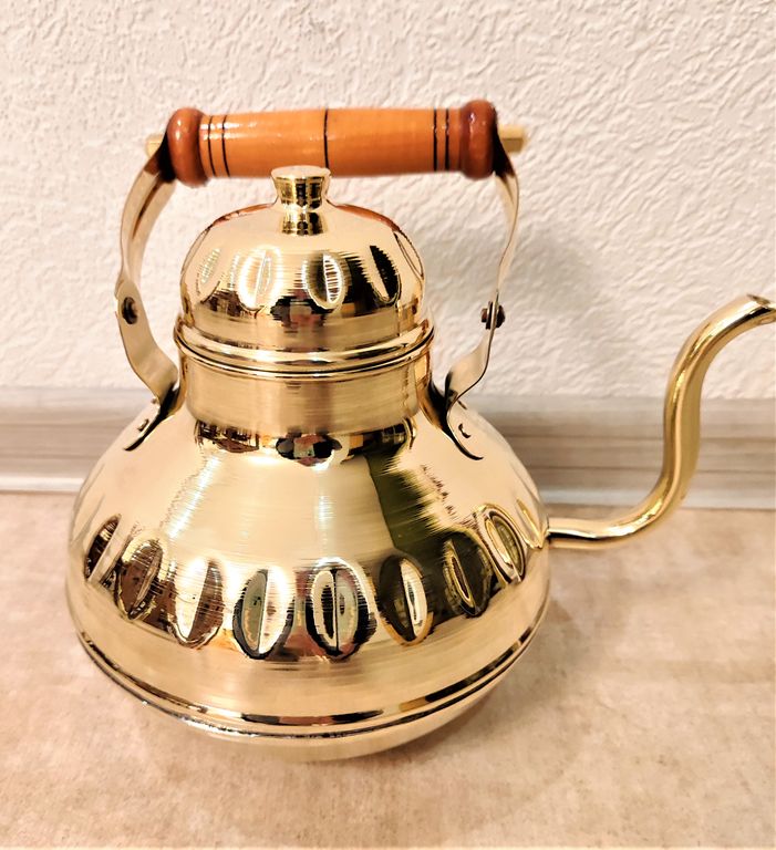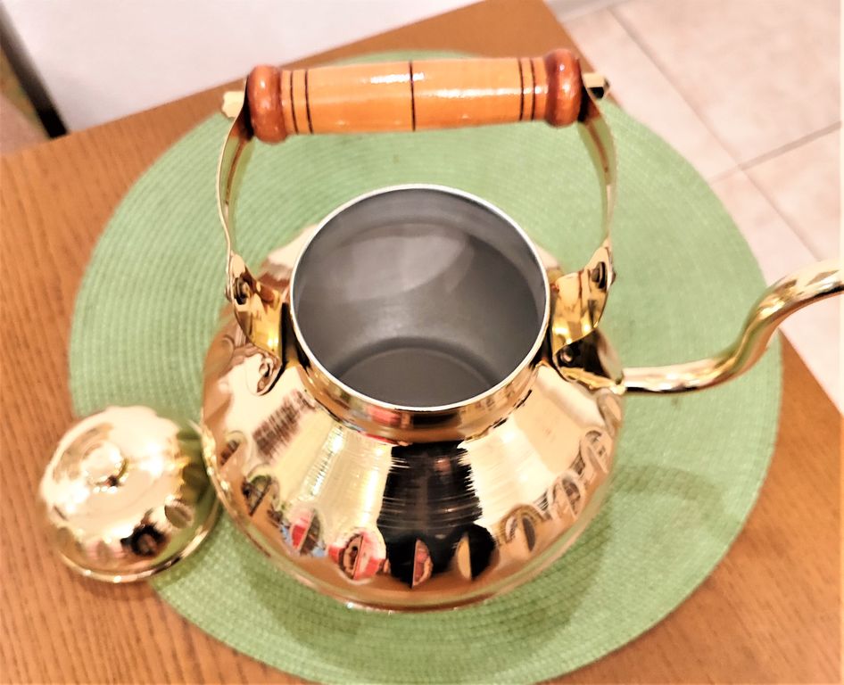 Новый латунный чайник, внутри луженый оловом, ручка деревянная. Россия. All-copper