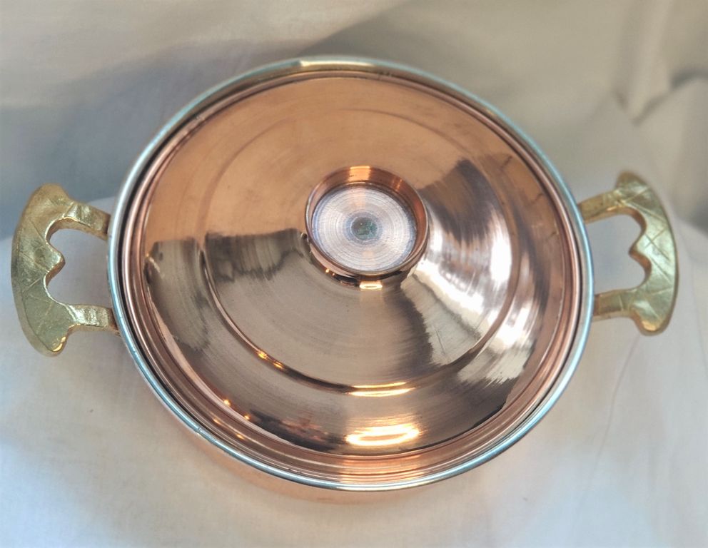 Изготовлен из чистой меди, внутри покрыт оловом, ручки латунные.