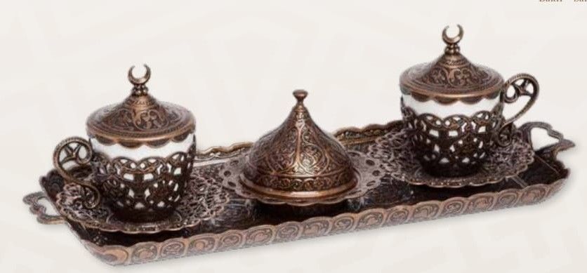 Медный турецкий набор для кофе. Кофенабор. Армуды. Изготовлен из меди турецкими ремесленниками.