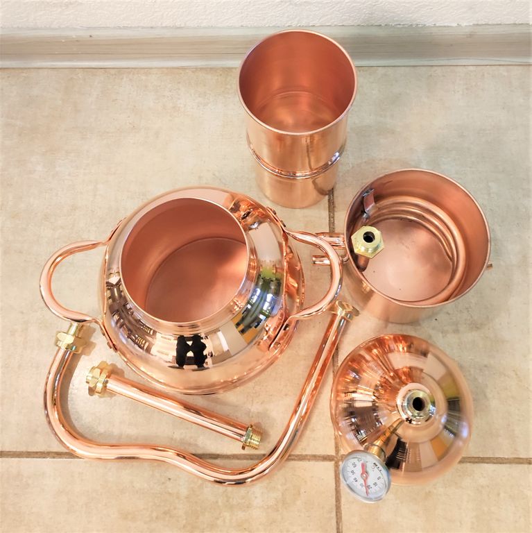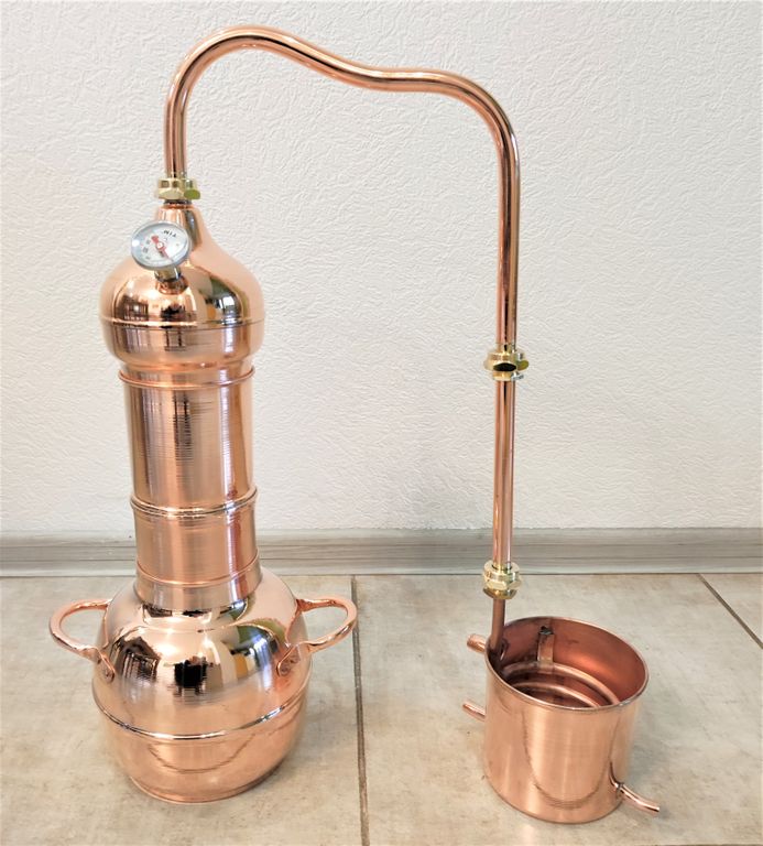 Изготовлен по аналогу португальского аламбика из чистой российской меди марки М1, в комплекте с термометром.