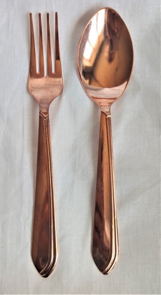 Комплект: медная столовая ложка и вилка. Изготовлены из чистой меди (не омеднение)