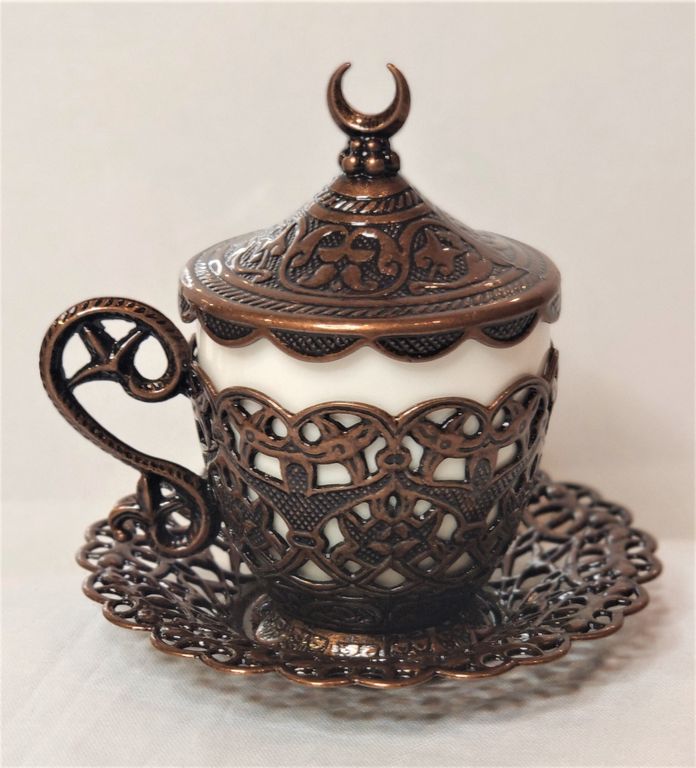Медный турецкий набор для кофе. Кофенабор. Армуды. Изготовлен из меди турецкими ремесленниками.