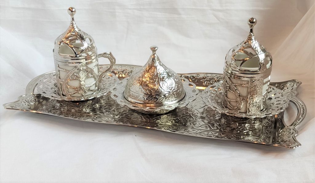 Кофейный набор на две персоны "Серебро" подарочный. Турция. Армуды.