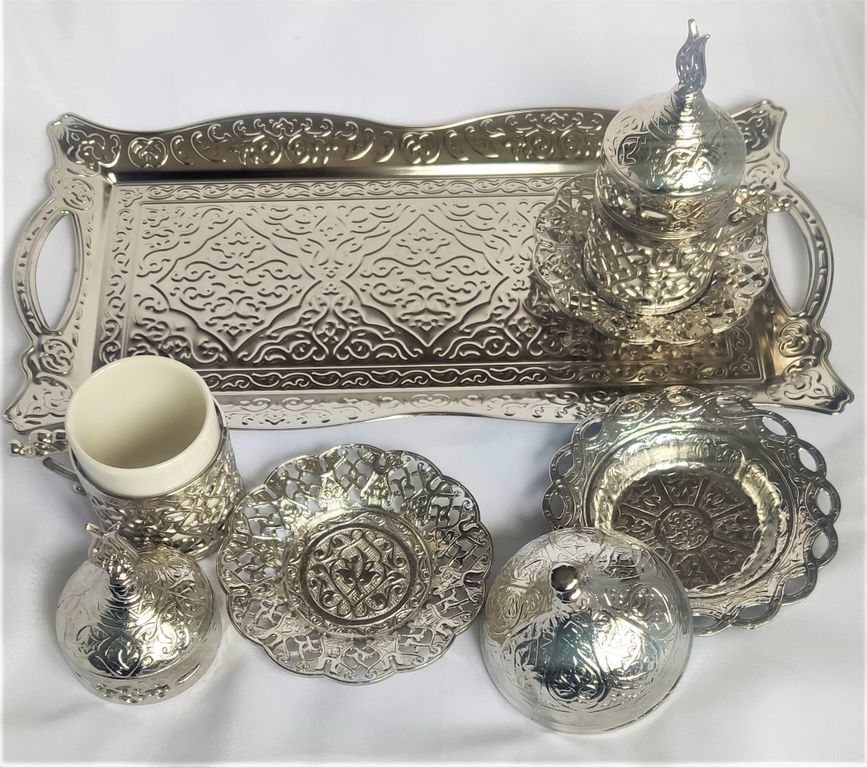 Кофейный набор серебряный на две персоны подарочный. Турция. Армуды.