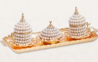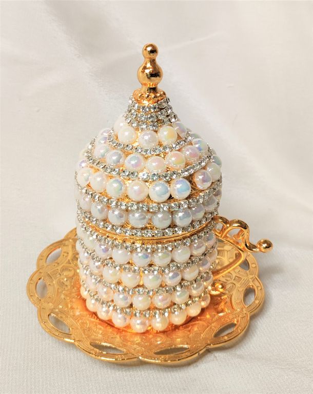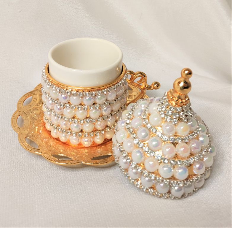 Кофейный набор в золоте с имитацией под жемчуг на две персоны. Турция