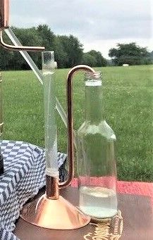 Подставляется под штуцер, откуда вытекает гидролат. Работает по принципу сообщающегося сосуда. Гидролат, проходя через прозрачную колбу, вытекает через медную трубку, а в этой колбе собирается эфирное масло, благодаря тому, что оно легче гидролата. Прозрачная емкость съемная.