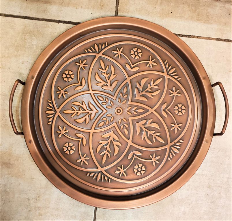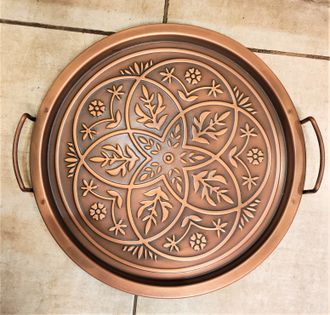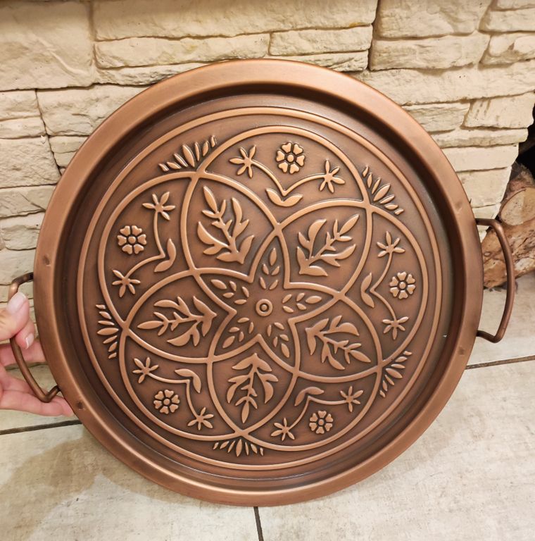 Медный поднос с рисунком изготовлен под античную медь.Турция