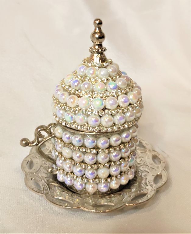 Шикарный кофейный набор под серебро с имитацией жемчуга на 6 персон. Турция