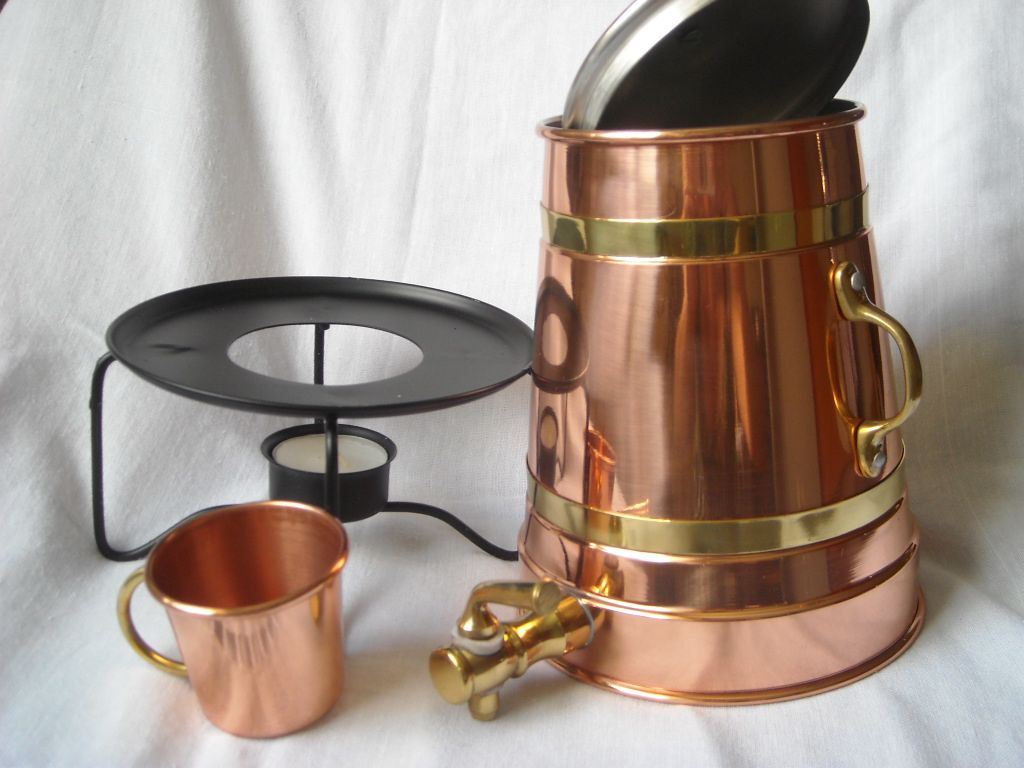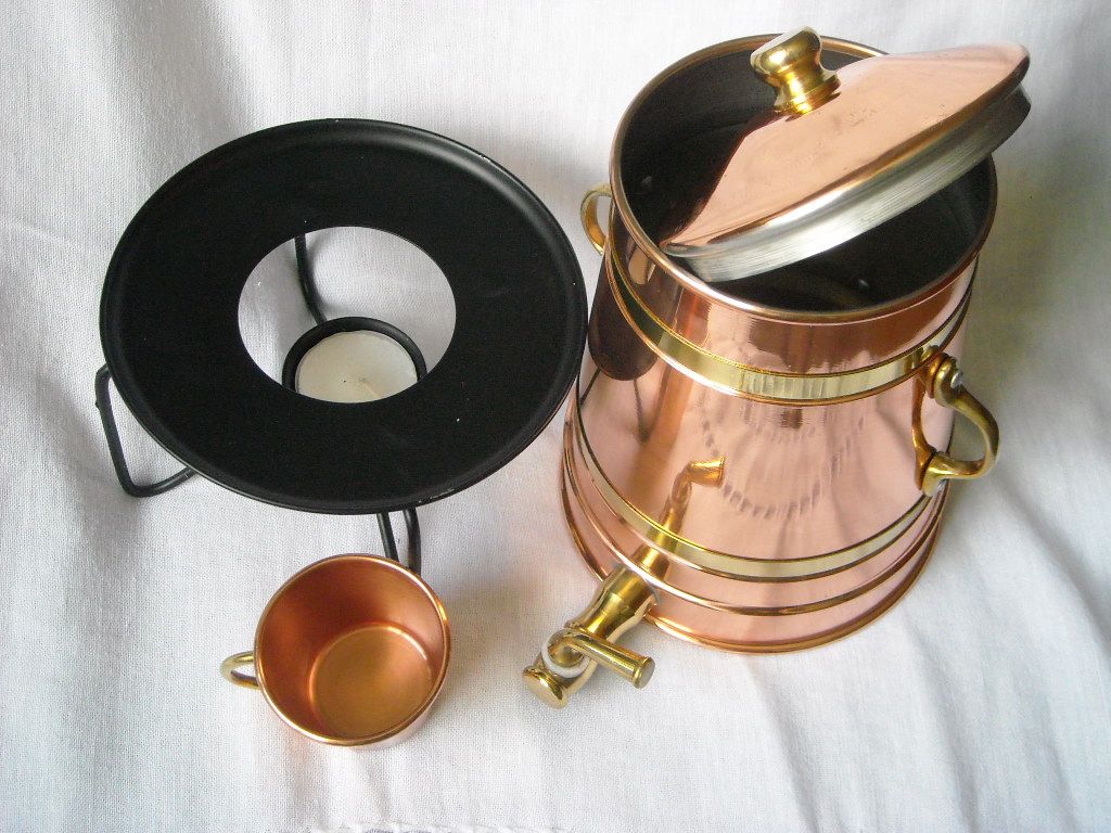 Медный чайник для глинтвейна с краном, с подогревом свечой. Медный кувшин. Португалия