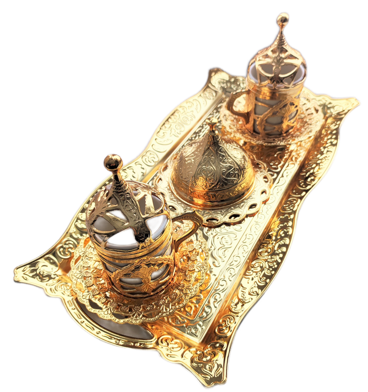 Медный кофейный набор "Золотой Лотос" на две персоны. Турция. Турецкие армуды.