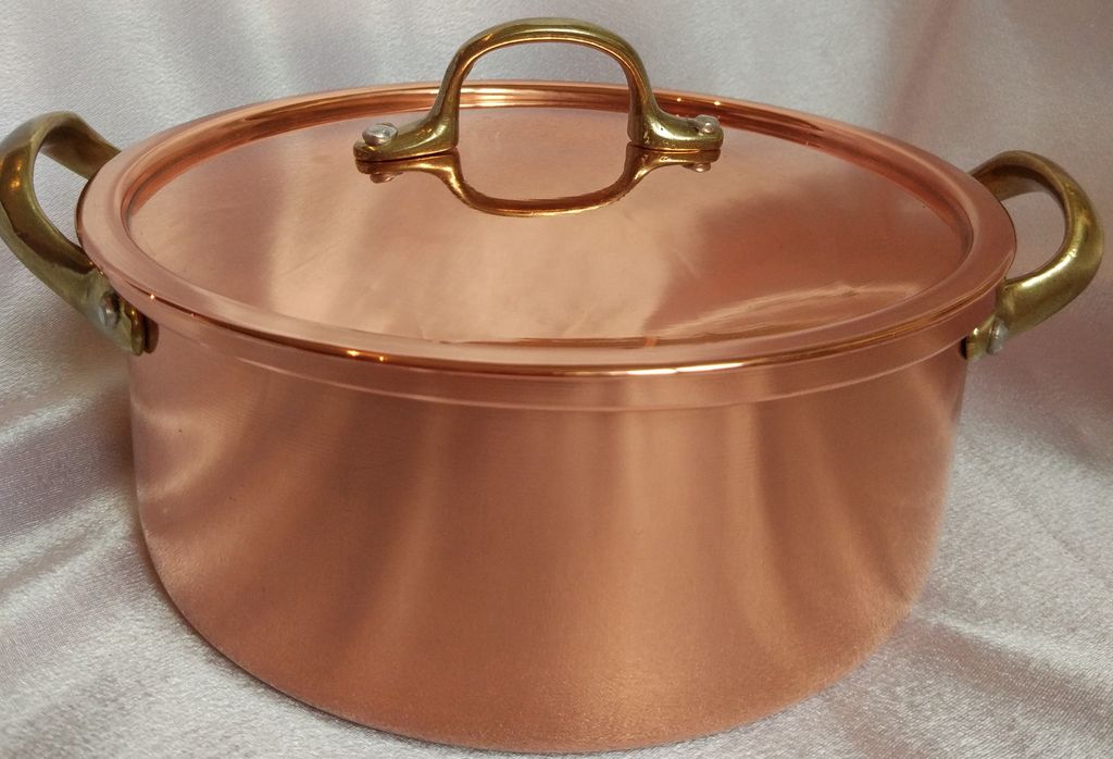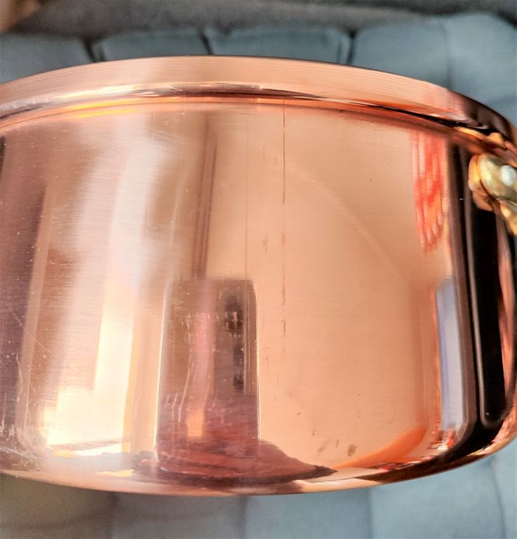 Медная низкая кастрюля, внутри луженая. Португалия
