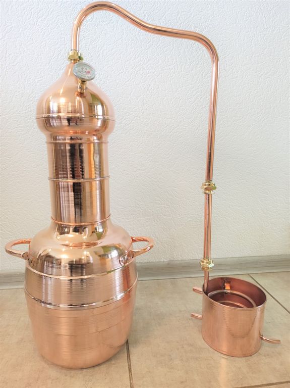Изготовлен по аналогу португальского аламбика из чистой российской меди марки М1, в комплекте с термометром.
