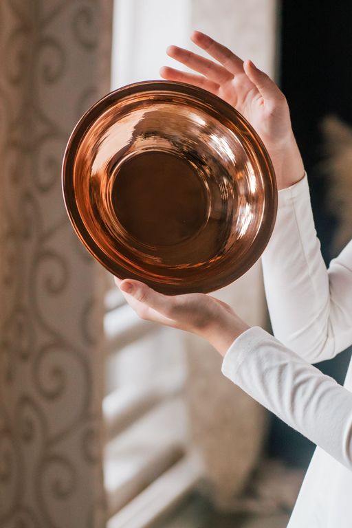 Медная тарелка для применения в быту, изготовлена из пищевой меди марки М1 в России