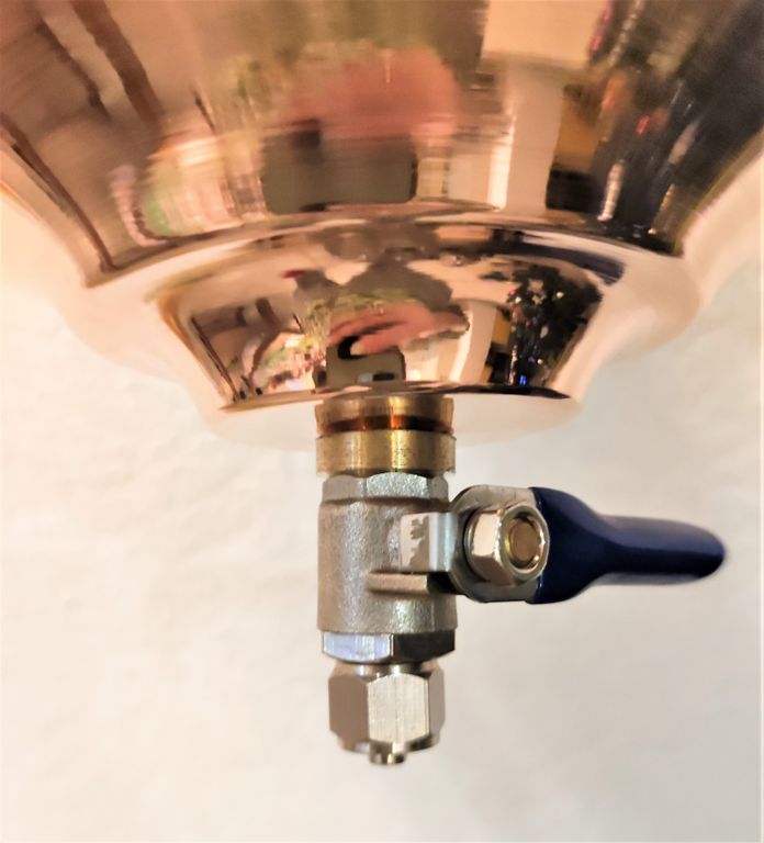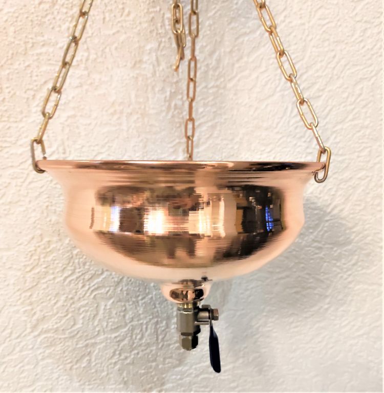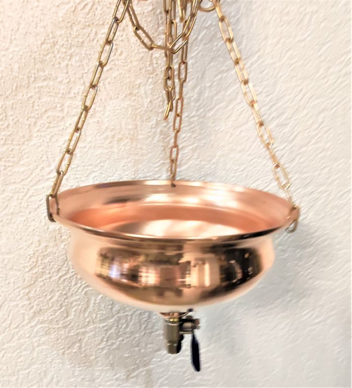 В комплект входит латунная цепочка для подвешивания чаши. Внизу расположен кран для регулировки струи.